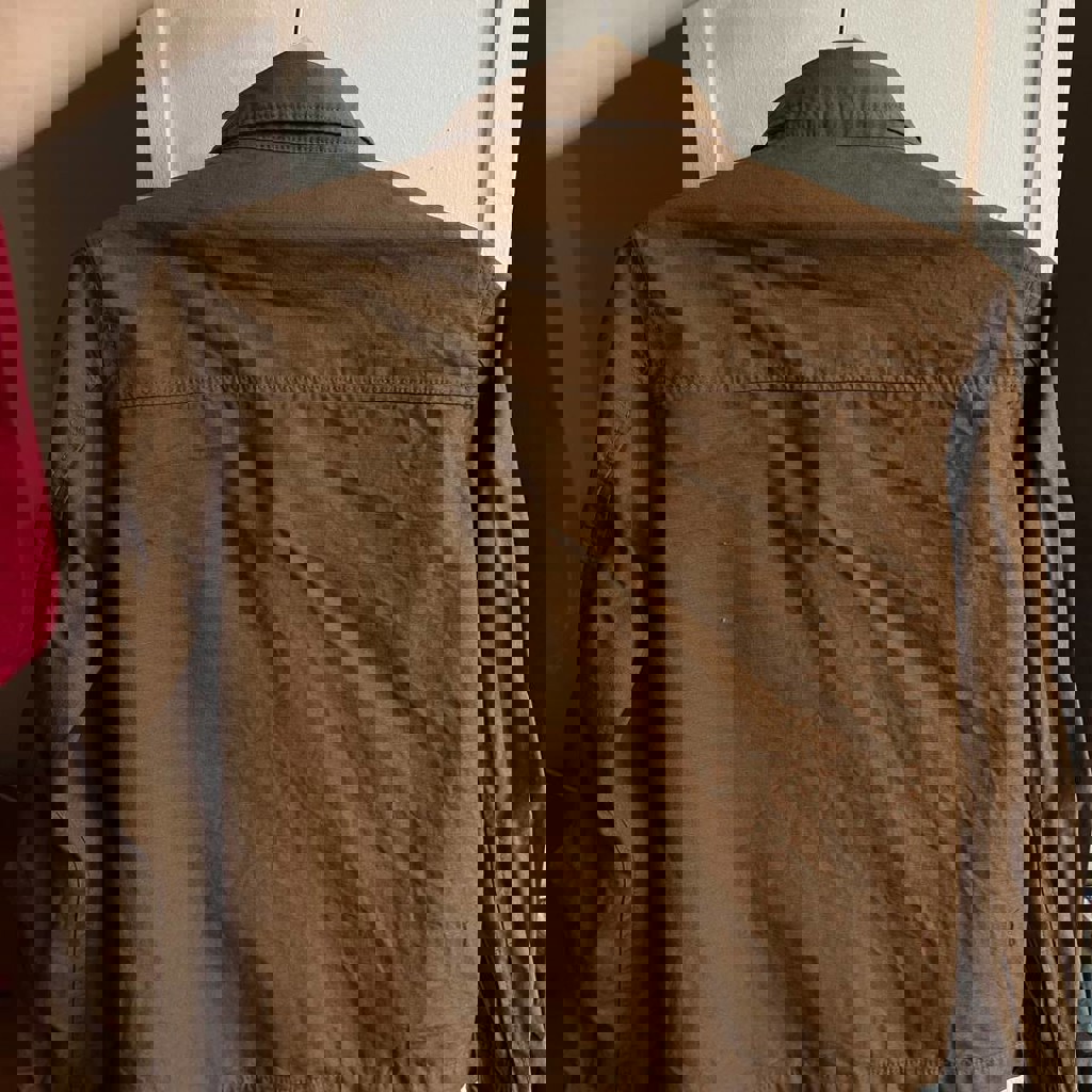 Cotton Twill Utility Shirt, размер S, цвет — оливково-коричневый / khaki, 2 нагрудных кармана, плотный хлопок, прямой крой, матовые пуговицы в тон ткани. Почти не носила, состояние отличное.