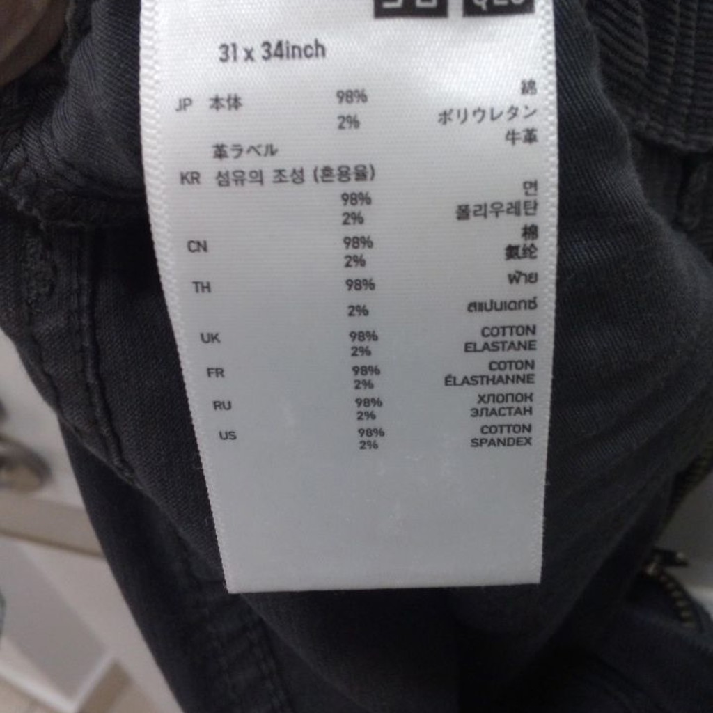 Брюки Uniqlo из плотной ткани (похоже на мелкий вельвет/джинсу). Ткань не тянется. Посадка нестандартная: высокая талия, в икрах соответствует S (44), в талии и бёдрах — ближе к M (46). Подойдут на фигуру с более узкими икрами и объёмными бёдрами/талией. Цвет: тёмно-коричневый / коричнево-серый. Материал: хлопок - 98%, эластан 2%.