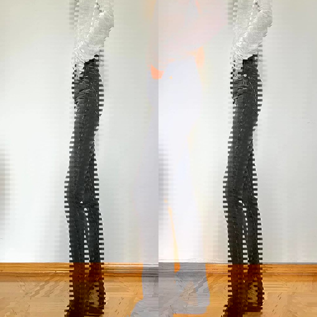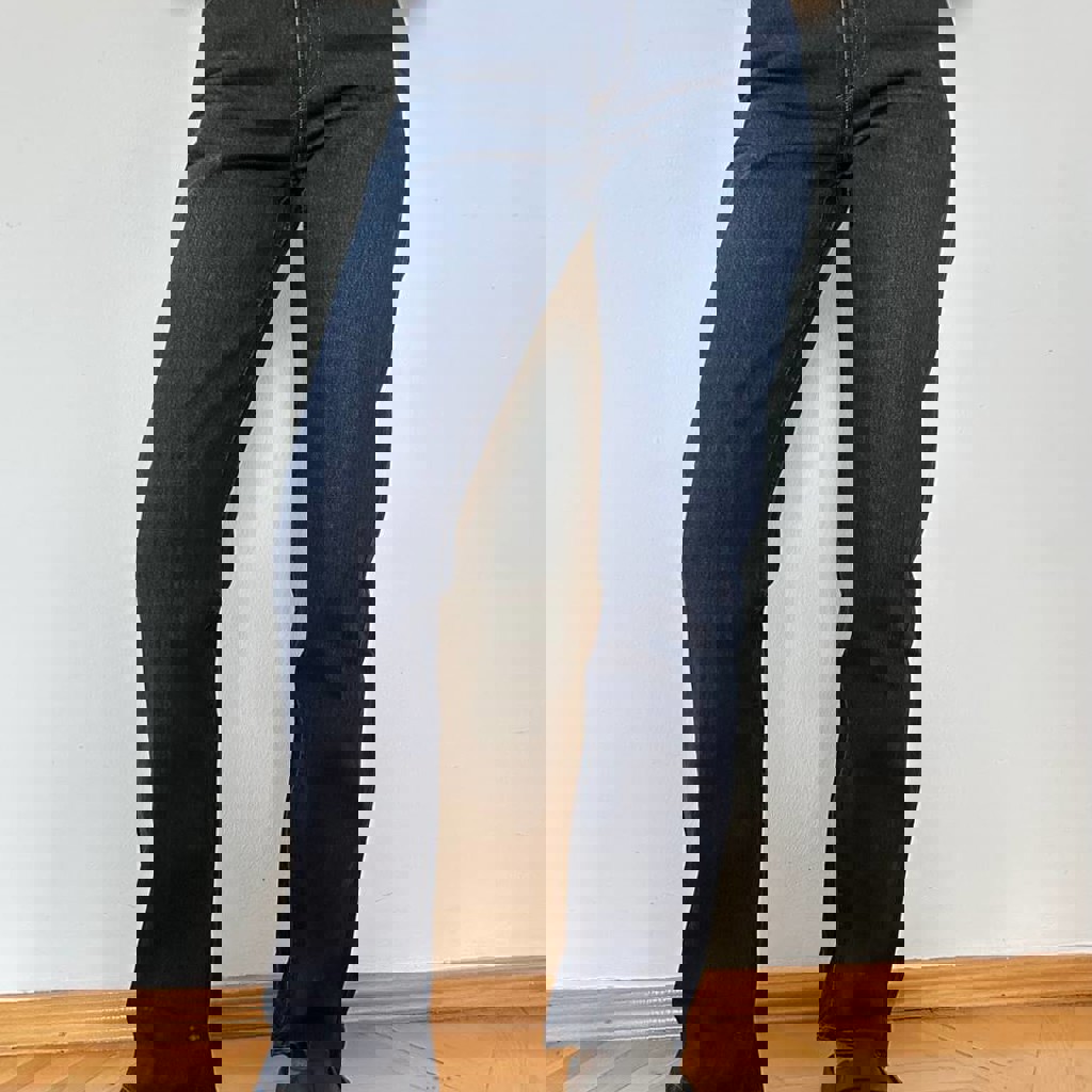 Плотная джинса темный синего цвета. Размер 23 (талия - 32 см, бедра - 43 см). Состояние отличное, колени не вытянуты. Сама бы носила и дальше, но увеличилась в талии.