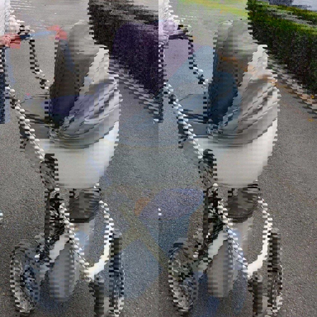 В комплекте люлька, прогулочный блок, маскитная сетка, теплый чехол и документы. Имеются потертости, на работоспособность никак не влияет.