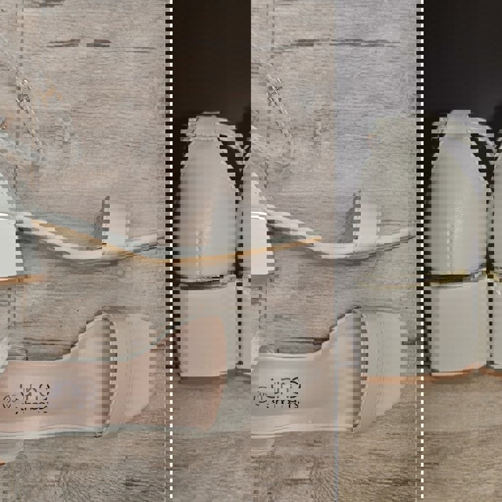 Стильные босоножки Uno Shoes — идеальное состояние. Обували всего один раз на выпускной. Выглядят очень аккуратно и дорого, подойдут под любой праздничный образ. Размер: 36. Нежный молочный/айвори с золотистой вставкой на каблуке. Устойчивый квадратный каблук, очень удобная колодка. На фото есть замеры стельки и полноты. Подойдут для выпускного, свадьбы или фотосессии.
