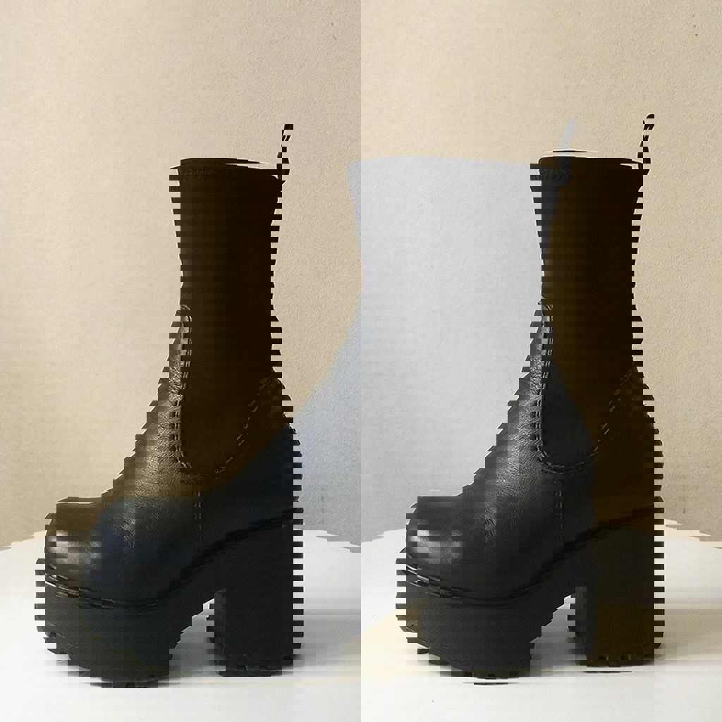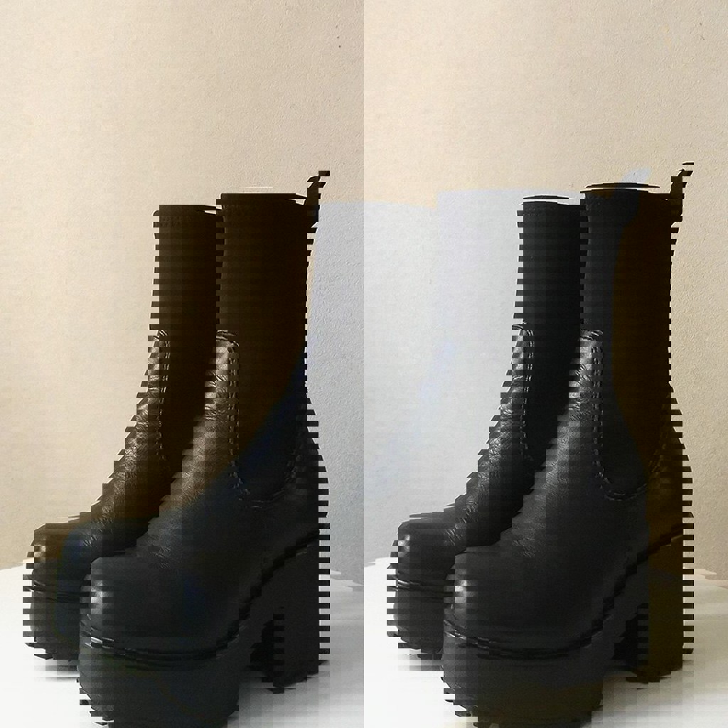Черные ботильоны из натуральной кожи с тракторной подошвой и эластичным верхом, удобные демисезонные ботинки в минималистичном стиле.