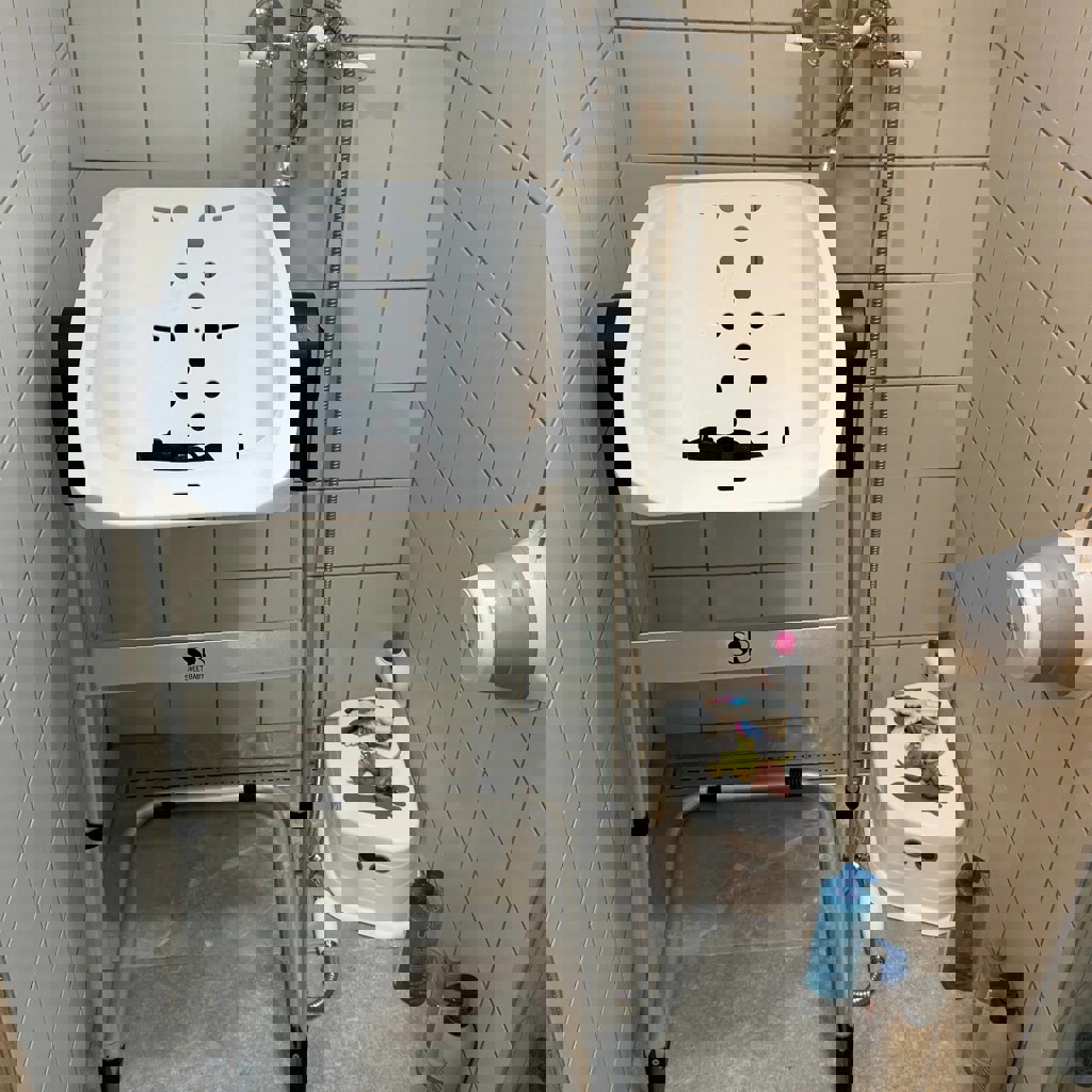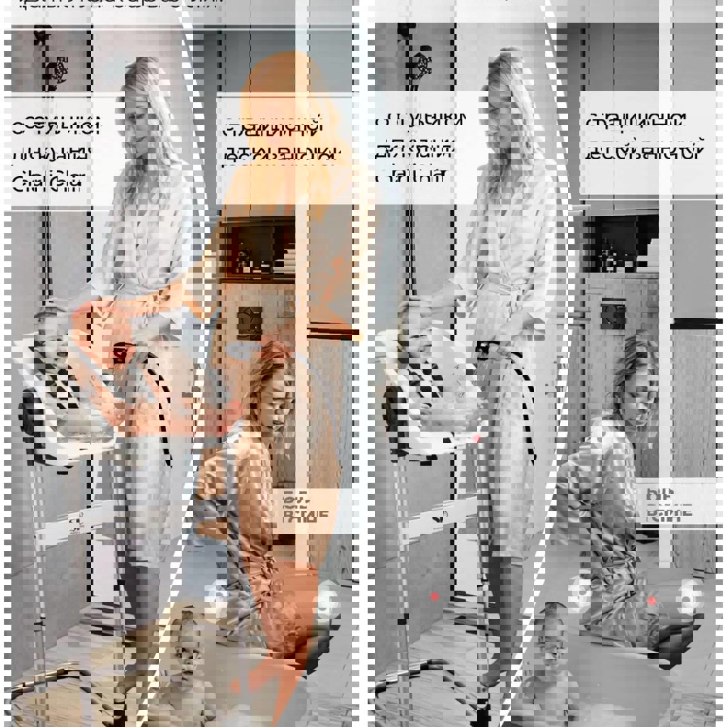Супер удобная ванночка для купания младенцев для душа. Пользовались для ванных процедур и просто переносили по квартире за собой с ребенком - незаменимая вещь, жаль , что выросли из него. Несколько положений наклона и ремни безопасности.