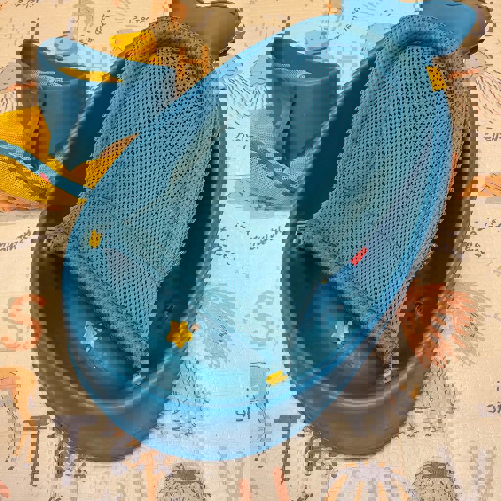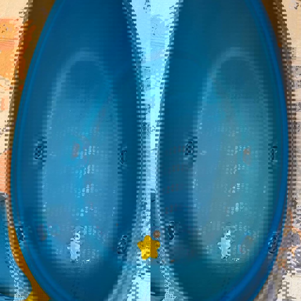 Положение гамака регулируется под любой возраст, можно купать в ней с рождения. Супер удобная. Есть крючок, чтобы повесить и сетка на присосках под игрушки.