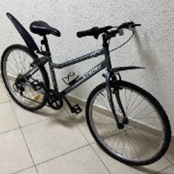 Колеса 26", 7 передач, рама 53 см, дисковые тормоза, noname. Катит хорошо, на начало сезона вполне подойдет. Требует ухода после зимы - смазки цепи.