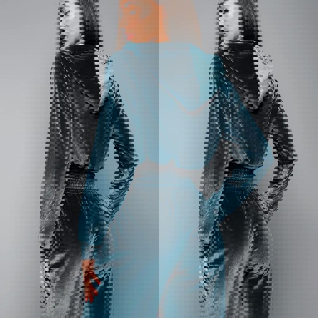Изысканный женский велюровый брючный костюм с укороченным худи на молнии, размер s, о/т - 60 см, надетый всего один раз. Выполнен из мягкого, бархатного материала с удобным капюшоном и богатой текстурой. Такой костюм подчеркнёт ваш стиль, создаст уют и нежность, а также позволит выглядеть элегантно как дома, так и на прогулке.