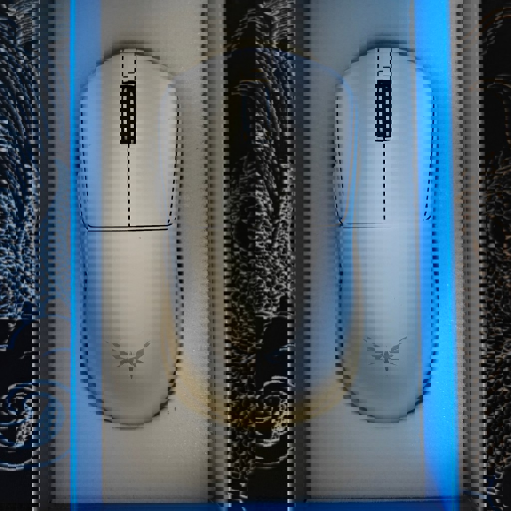 Мышка в около идеальном состоянии, присутствует маленький скол на левой кнопке мыши (на фото видно). Мышка не даблкликает совсем и колесико исправно работает. Остальное все работает идеально, по вашему желанию могу поменять глайды на 'esptiger ice v2'.