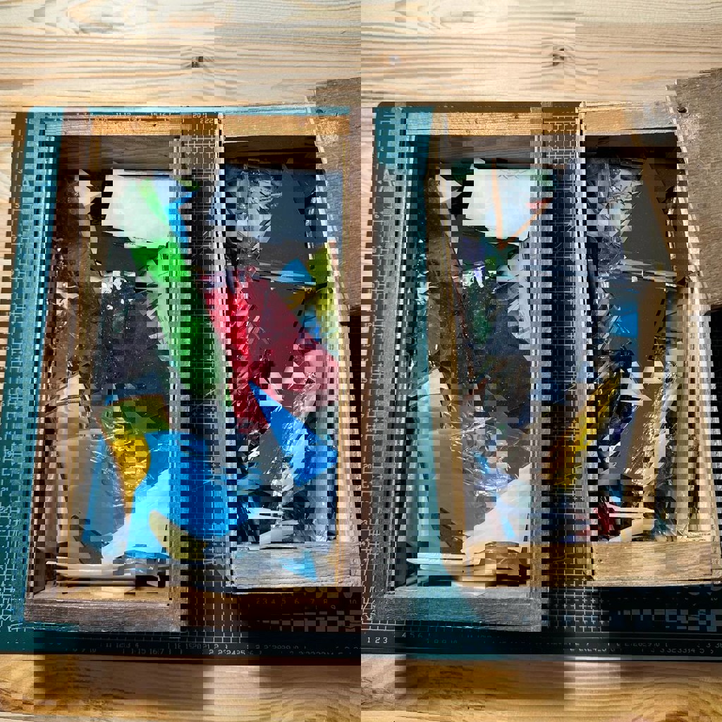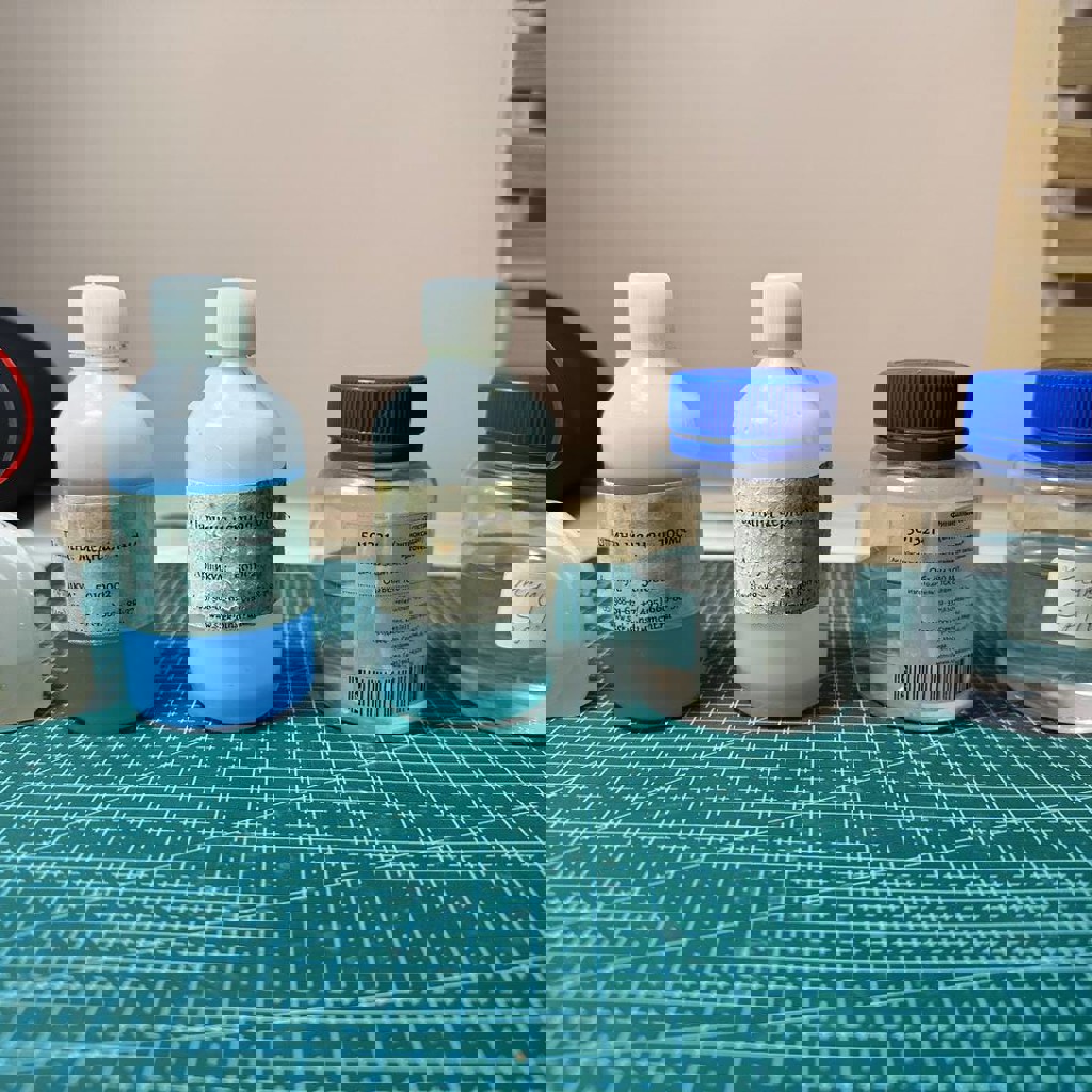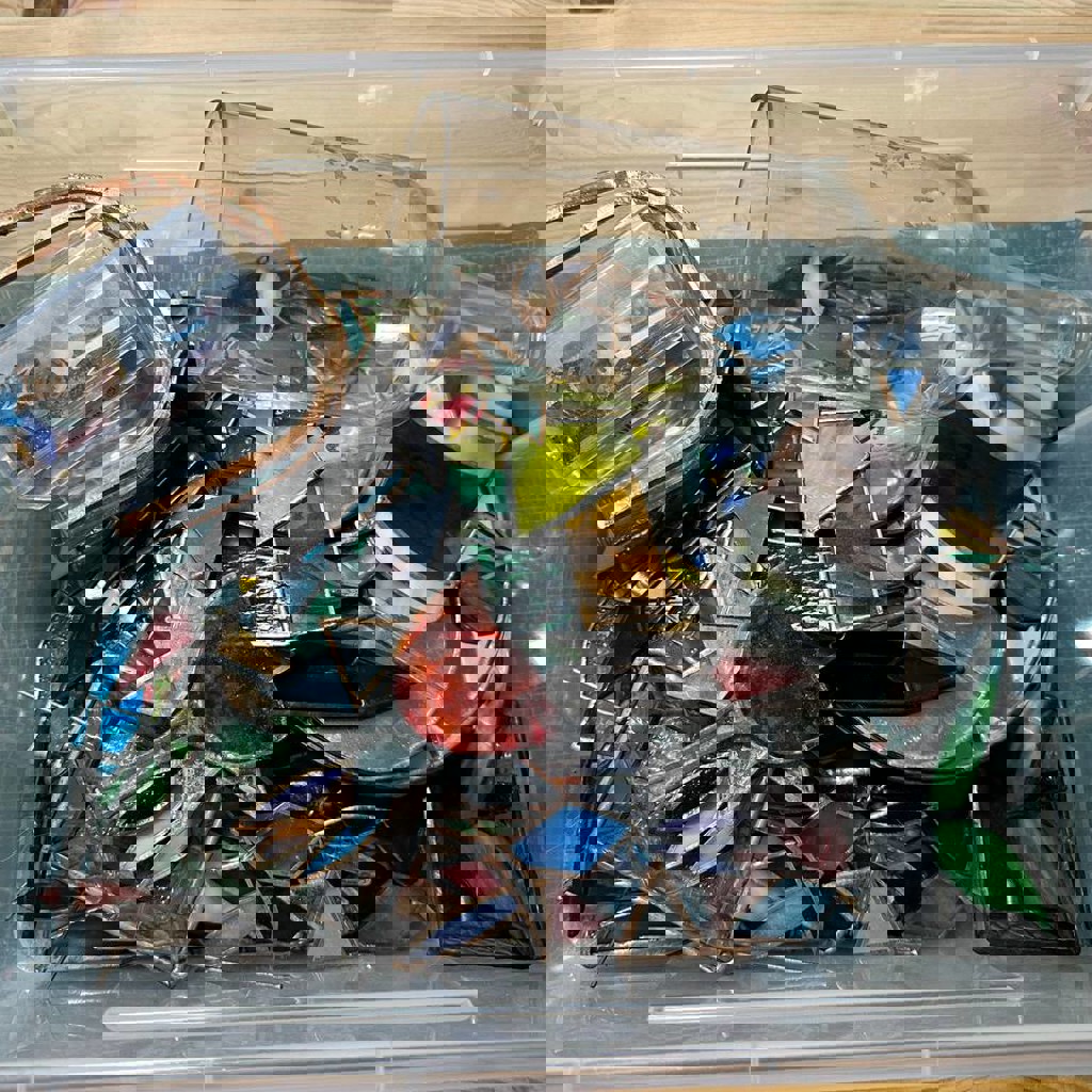Полный комплект для создания витражей из стекла, включая коврики, патину, жидкость для стеклореза и другое.