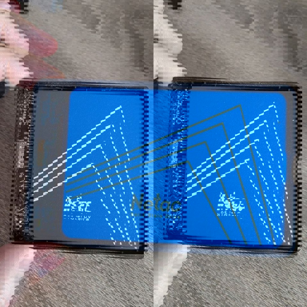 Сам SSD бренда NETAC, куплен примерно год назад, полностью работоспособен. SSD вставлен в специальный внешний кейс для подключения по USB. Любые тесты/проверки приветствуются.