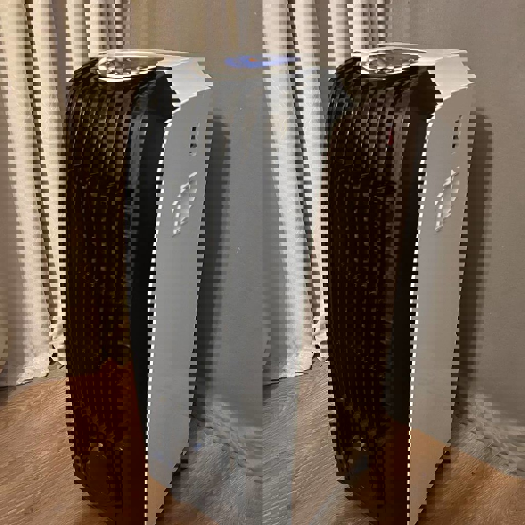Новый воздухоохладитель, но без коробки и гарантии. Работает как вентилятор, охладитель и увлажнитель воздуха.