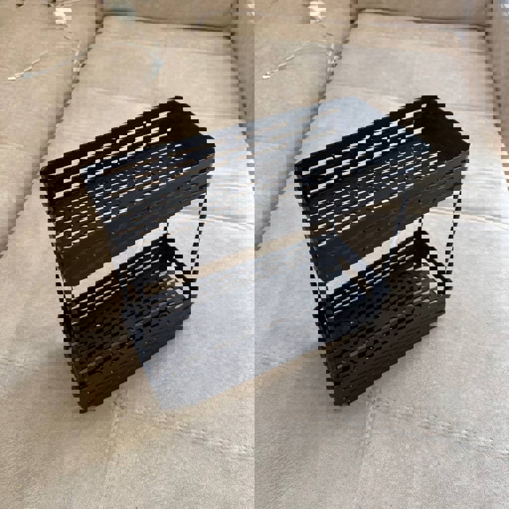 Выдвижной ящик на направляющих. Размер: (ШхДхВ) 11х26,5х22,5 см. Глубина одного ящика - 4 см. Высота от нижнего ящика до верхнего - 17 см. Выдвигается на 20 см. Цвет: Черный. Состояние: Отличное, в использовании не был. Саморезы в комплекте. Верхняя полочка снимается.