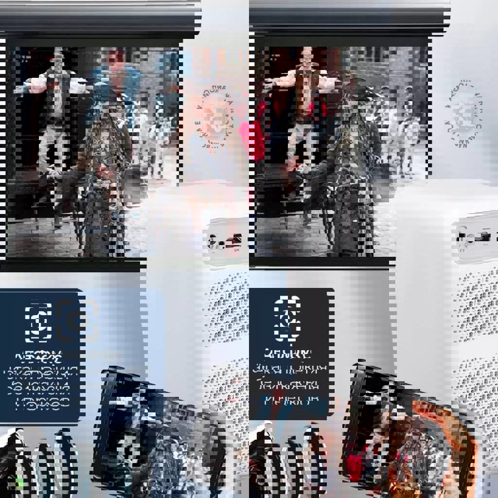 Проектор Wanbo T2 Max с возможностью воспроизведения с телефона и наличием встроенных приложений (ютуб, Netflix, Disney и куча других приложений, которые можно скачать).