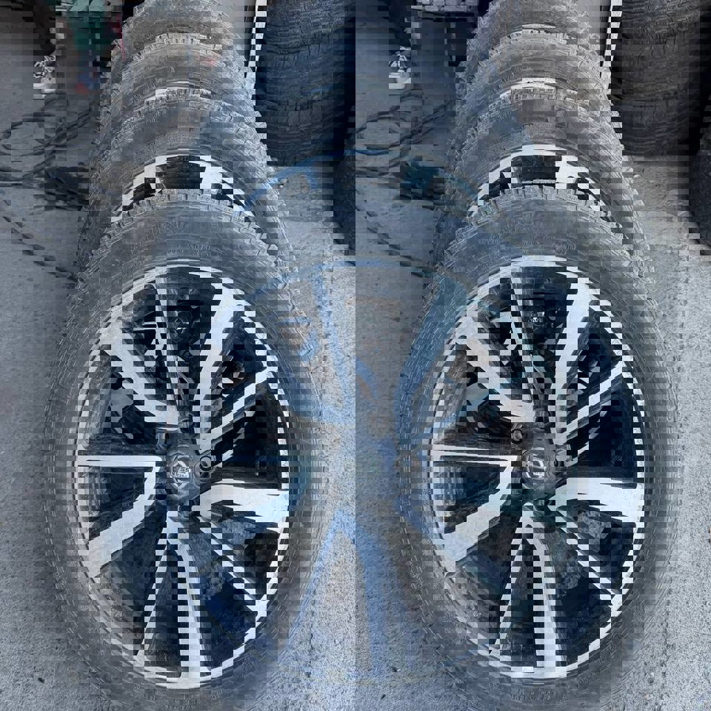 4 колеса в сборе на всесезонной резине, оригинальные диски nissan r19. Резина pirelli, на зиму хватит.