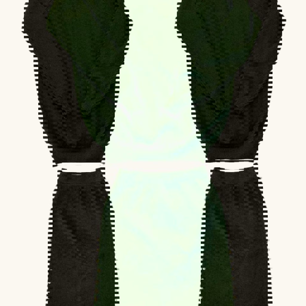 Женские костюмы глубоких зелёных оттенков (фото, с сожалению не передаёт цвета). Оба - размер 42/44. Костюм с верхом на молнии из искусственной замши с укороченным верхом. Второй костюм - мягкий полиэстер, без катышков. Верхняя линия рукава - с вырезами. В обоих вариантах юбки-карандаш. Цена - 10 лари за каждый.