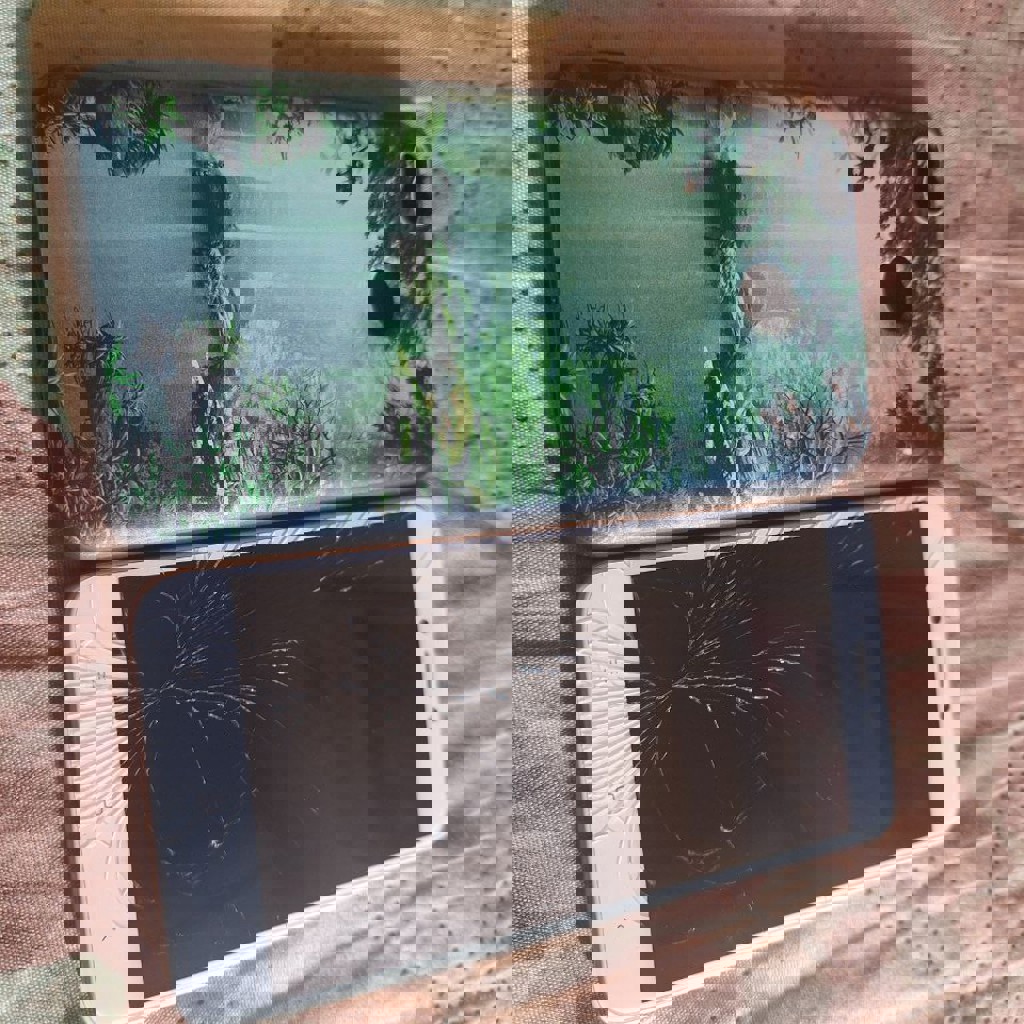 Full HD IPS экран, 4gb память, micro-usb, слот под большую (старую) симку. В комплекте чехол. Треснутый экран и дефект рядом с кнопкой включения. В остальном работает нормально.