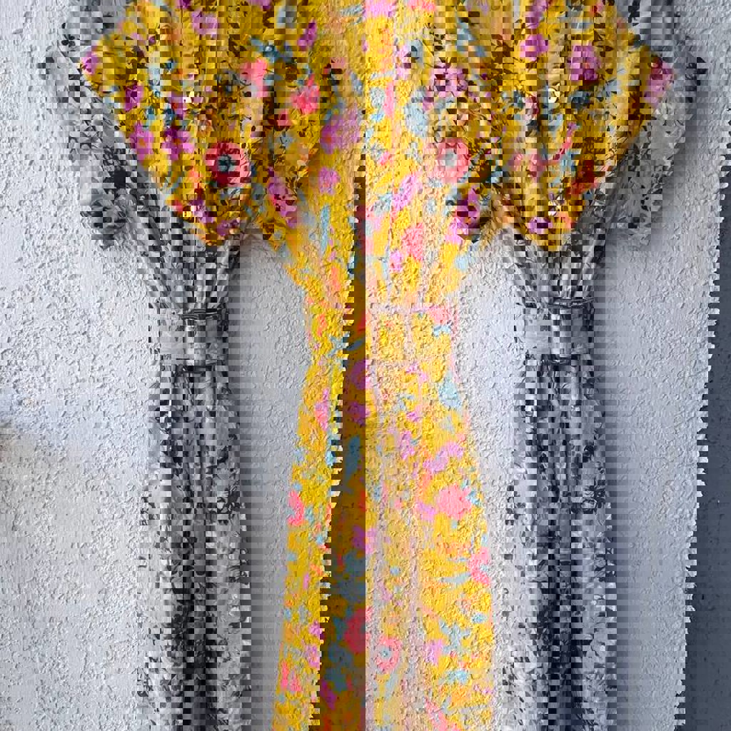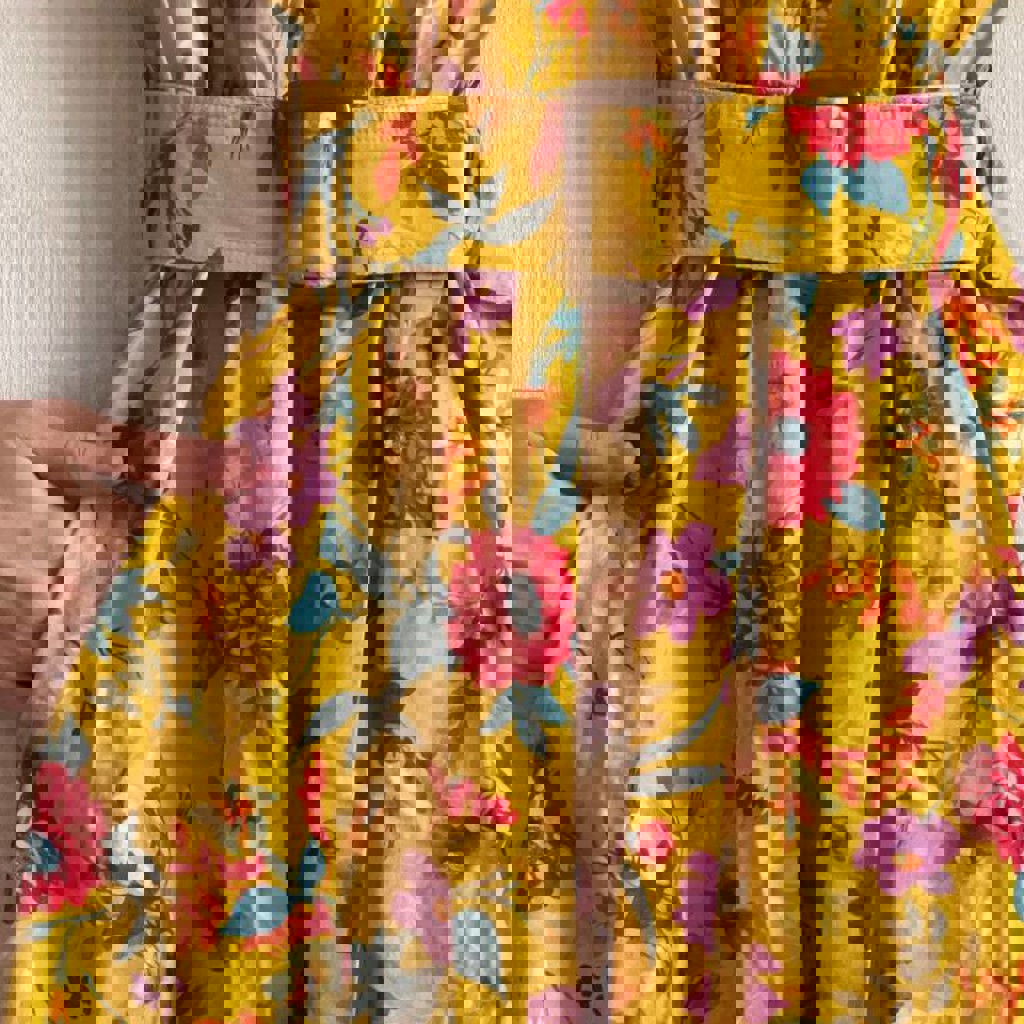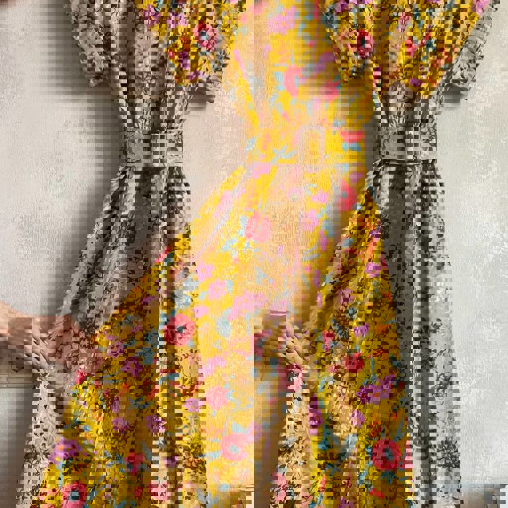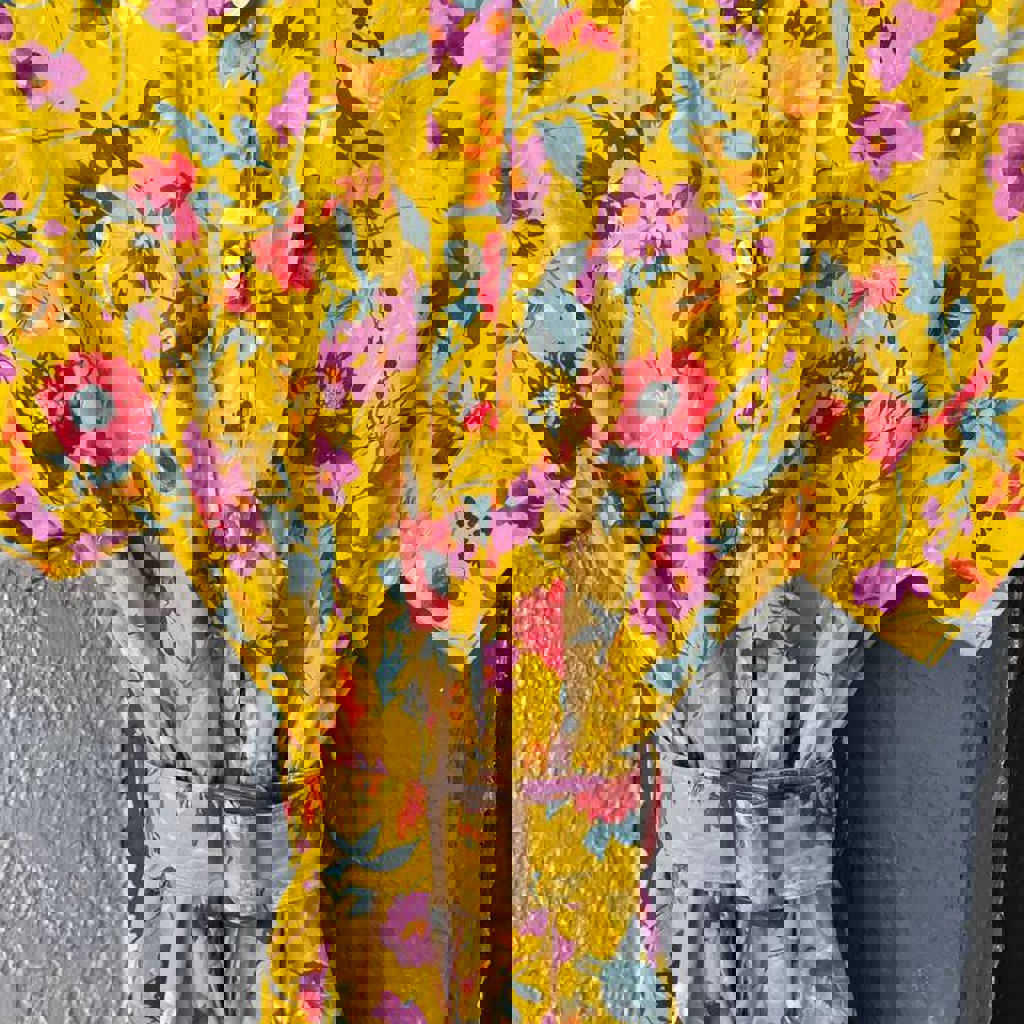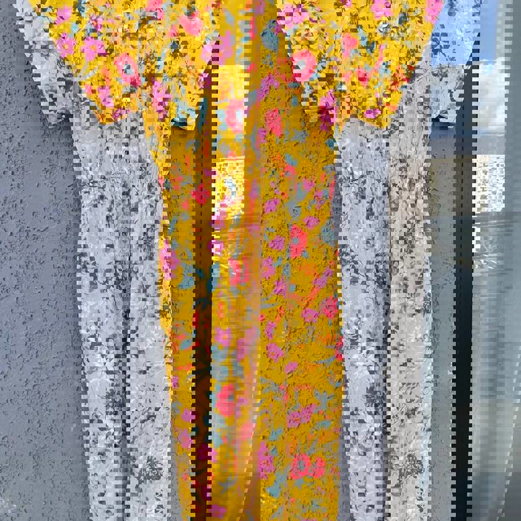 Жёлтое платье Imperial с цветочным принтом и поясом. Размер S. 97% хлопок, 3% эластан. Длина по спинке 122 см. Перламутровые пуговки, карманы. Идеальное состояние. Очень любила его, носила нечасто и очень бережно. Расстаюсь с ним, потому что больше не подходит мне по стилю.