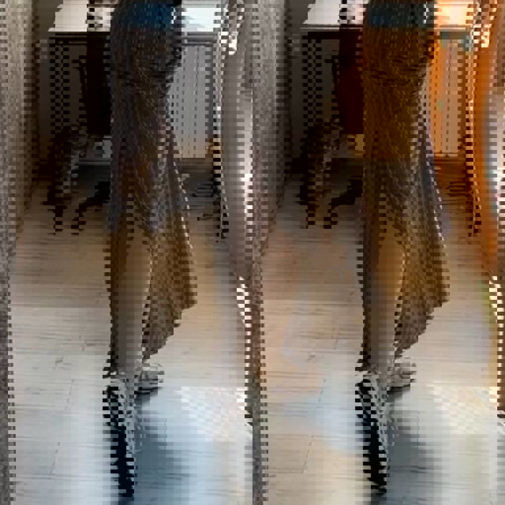 Состав: 80% хлопок, 20% лен. На мне затянута под ремень на талии, мне велика. Можно носить на бедрах на средней/низкой посадке. На талию 70см и чуть больше, бедра 100 и чуть больше. Сзади высокий разрез.