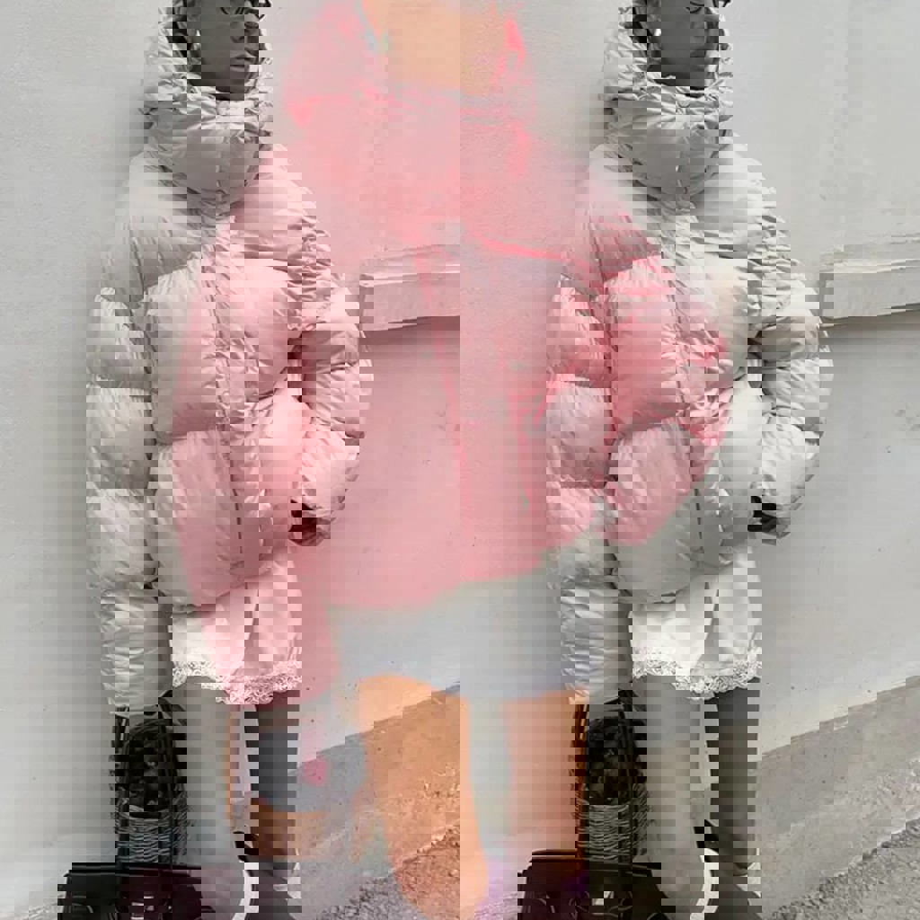 Нежно розовая зефирка - пуховик. Абсолютно новая. Надела только один раз на фотосессию. Ошиблась с размером. Размер M.