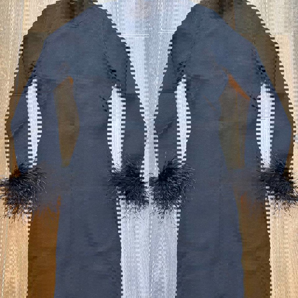 Платье трикотажное с отстегивающимися перьями, новое!!! Размер 44, цена 10 лари!