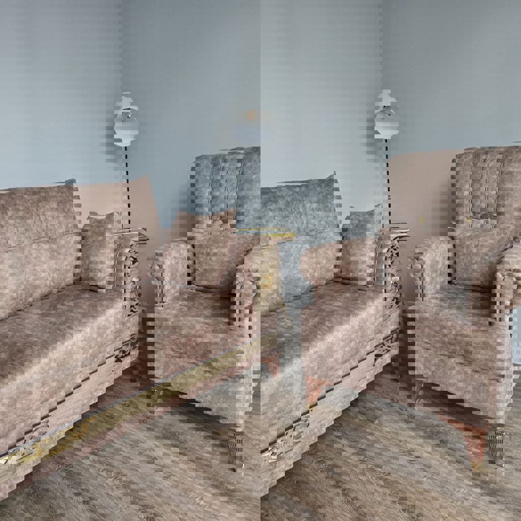 Диван раскладной 220×100 (в разложенном состоянии глубина 120 см) с двумя креслами,
