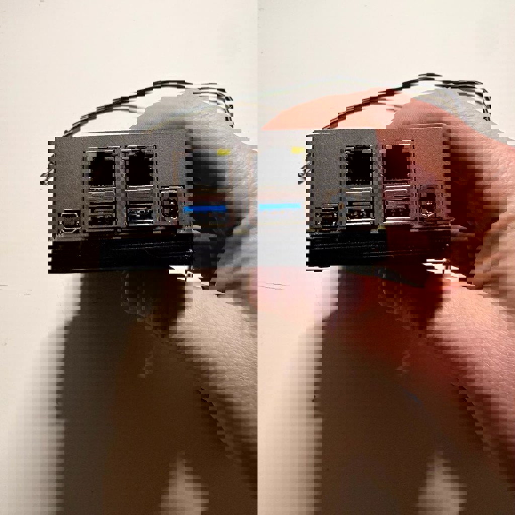 Компактный безвентиляторный компьютер с четырёхядерным процессором N3450, 8 гигабайт RAM, 32 гигабайта встроенной памяти. Имеет разъём SATA для внешних HDD/SSD, 2 разъёма USB 3.0, 2 сетевых порта на 2.5 гигабита и порт PCIe 2.0 x4. Подходит для домашнего NAS, медиасервера, качалки торрентов, селф-хостинга, сервера умного дома. Полностью рабочий в отличном состоянии.