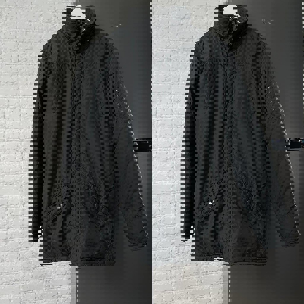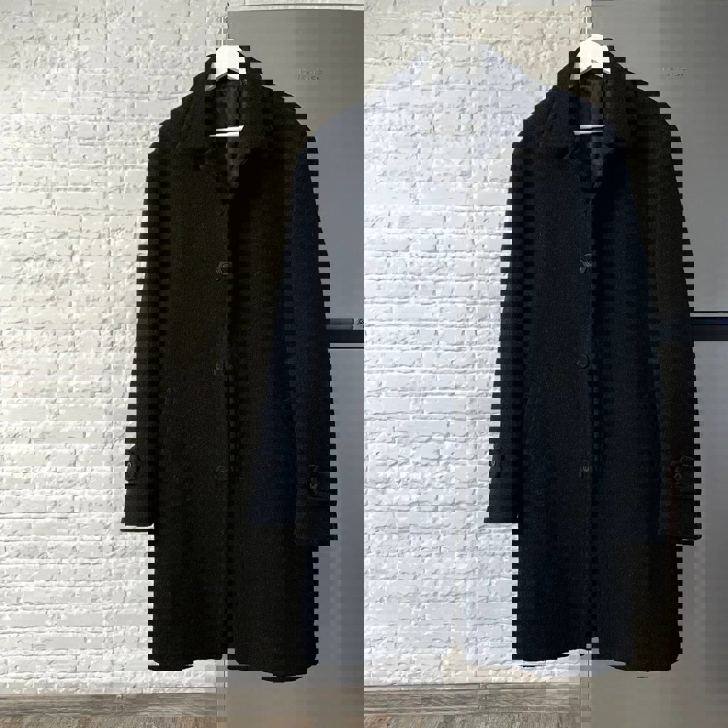 Пальто черное, прямое. Теплое. Размер L (длина 95 см, ширина плеч 54 см)