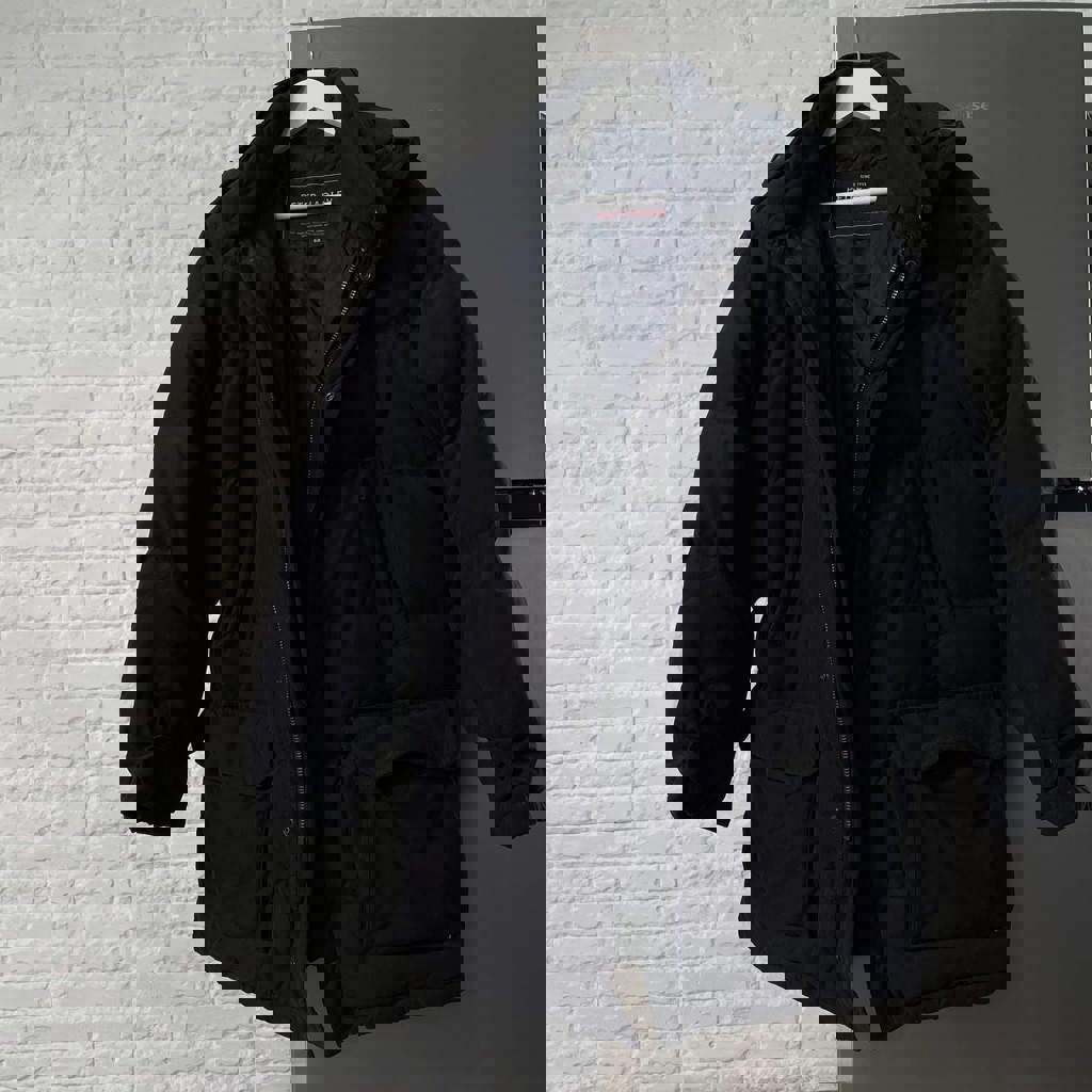 Зимняя куртка. Размер S (на бирке 170-176 для подростков 14-15 лет). Свето отржатель на уровне попы. Есть две маленькие дырки у кармана.