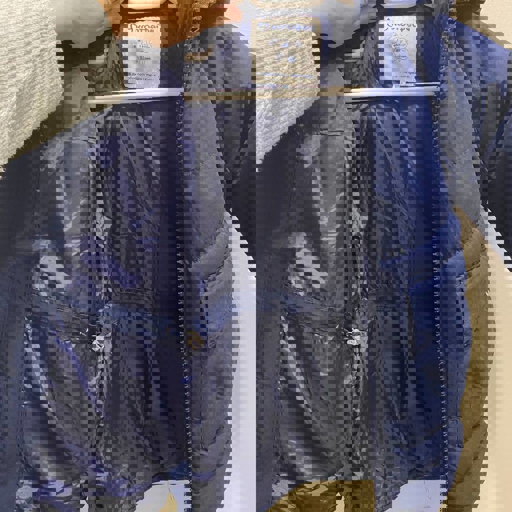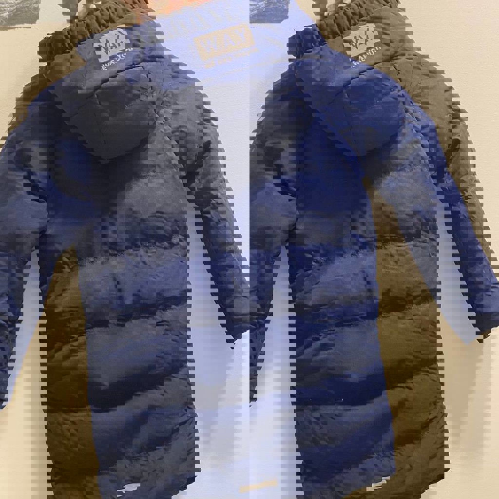 Тёплая зимняя куртка для ребёнка в отличном состоянии. Цвет: тёмно-синий (универсальный, под всё). Утеплённая — подойдёт как на демисезон так и на зиму. Отстегиваемый капюшон. Удобные карманы. Внутри есть бирка для имени/контакта. Лёгкая, но тёплая. Состояние отличное, без дефектов.